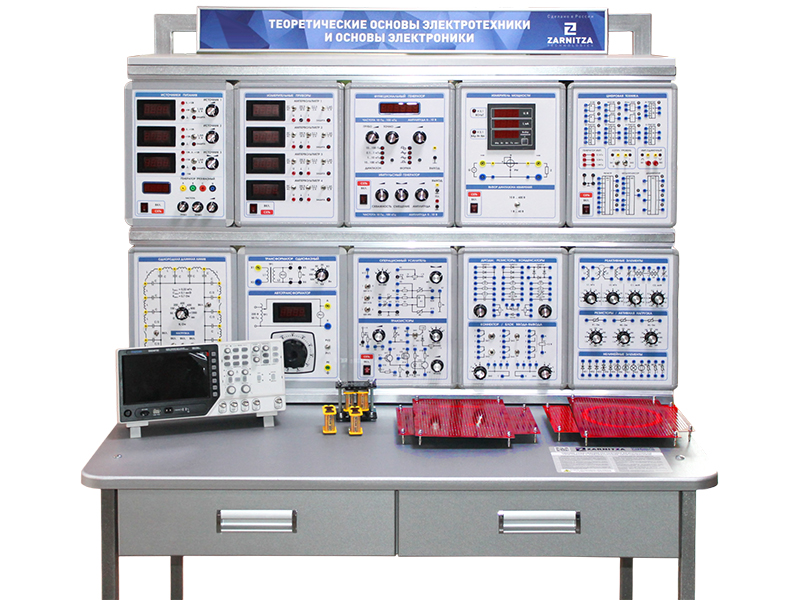 Комплект учебно-лабораторного оборудования "Теоретические основы электротехники и основы электроники" (далее - стенд) предназначен для проведения лабораторно-практических занятий по курсам "Теоретические основы электротехники" и "Основы электроники". Комплект обеспечивает изучение основ электротехники, измерительных приборов и способов измерений в электрических цепях, изучение электрических цепей постоянного и переменного тока. Комплект также позволяет изучить основы электроники и проводить лабораторные работы с применением полупроводниковых приборов, аналоговых электронных устройств на операционных усилителях, элементов и узлов цифровой техники и других элементов электронной техники.
