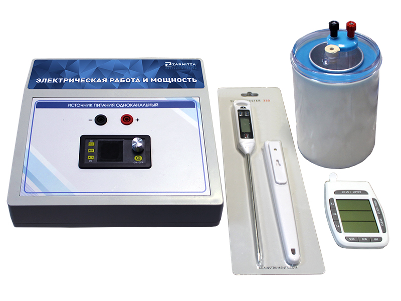 Комплект учебно-лабораторного оборудования "Электрическая работа и мощность" предназначен для проведения лабораторно-практических занятий по дисциплине "Физика: Электричество и магнетизм", обеспечивает определение мощности электрического тока на примере нагревательного прибора.