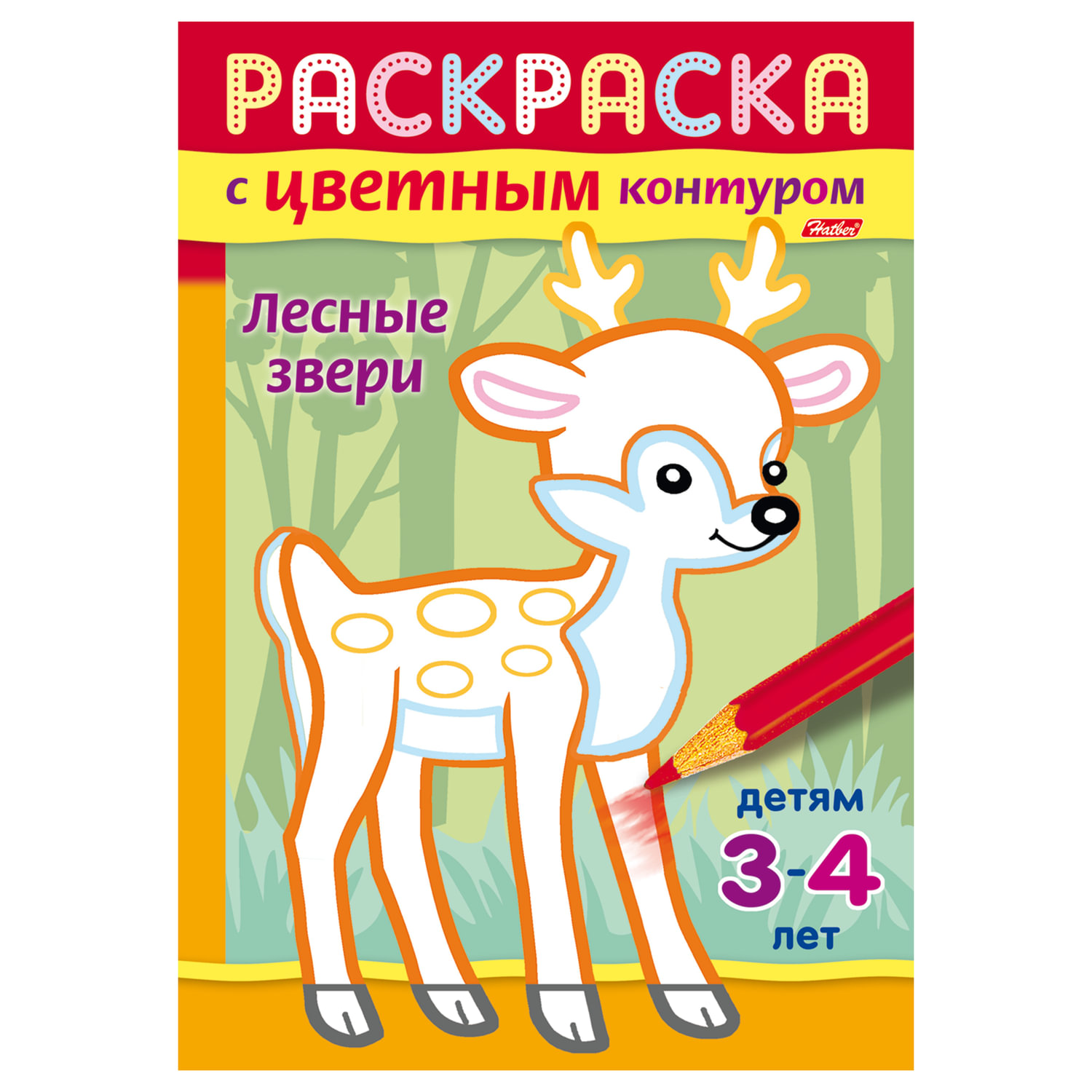 —Книжка-раскраска А5, 8 л., HATBER, с цветным контуром, "Лесные звери", 8Рц5 14424, R197967