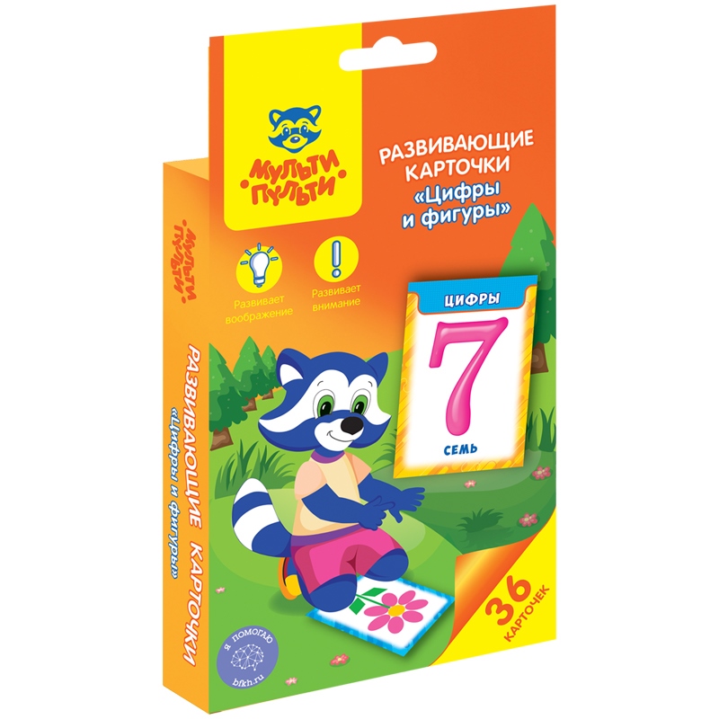 —Развивающие карточки Мульти-Пульти "Цифры и фигуры", 36шт., картон, европодвес