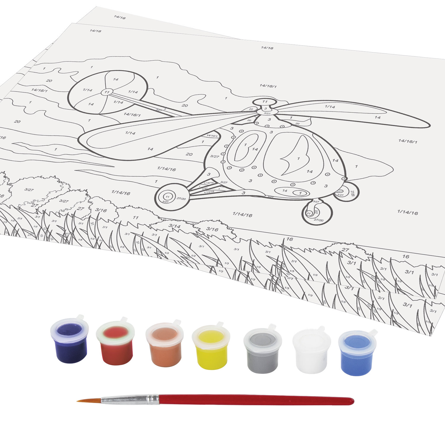 Раскраска по номерам А4, ЮНЛАНДИЯ "ВЕРТОЛЕТ", С АКРИЛОВЫМИ КРАСКАМИ, на картоне, кисть, 661592