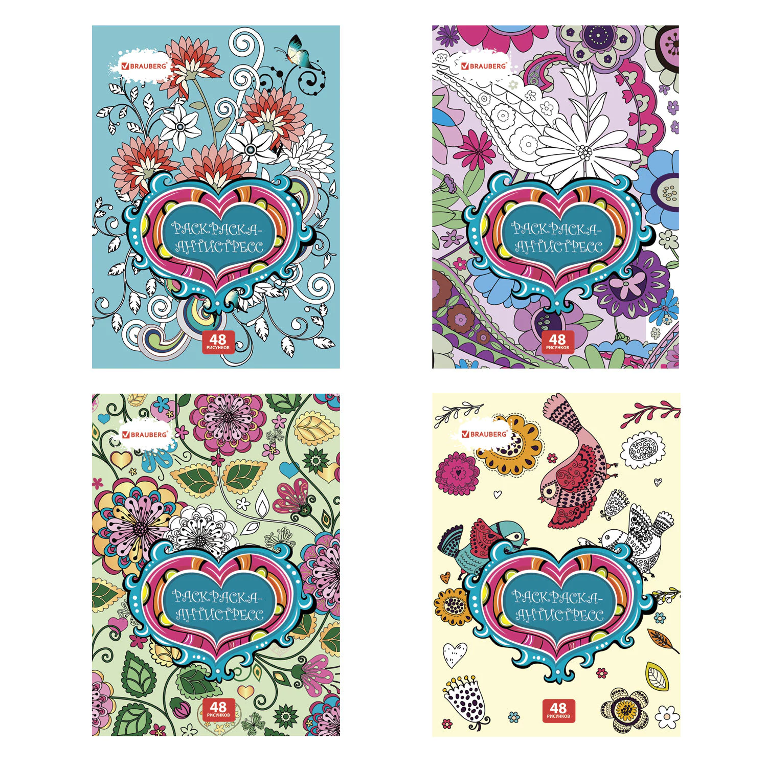 —Раскраска-антистресс, 48 рисунков, 24 листа, 210х290 мм, 120 г/м2, скрепка, BRAUBERG, 104150