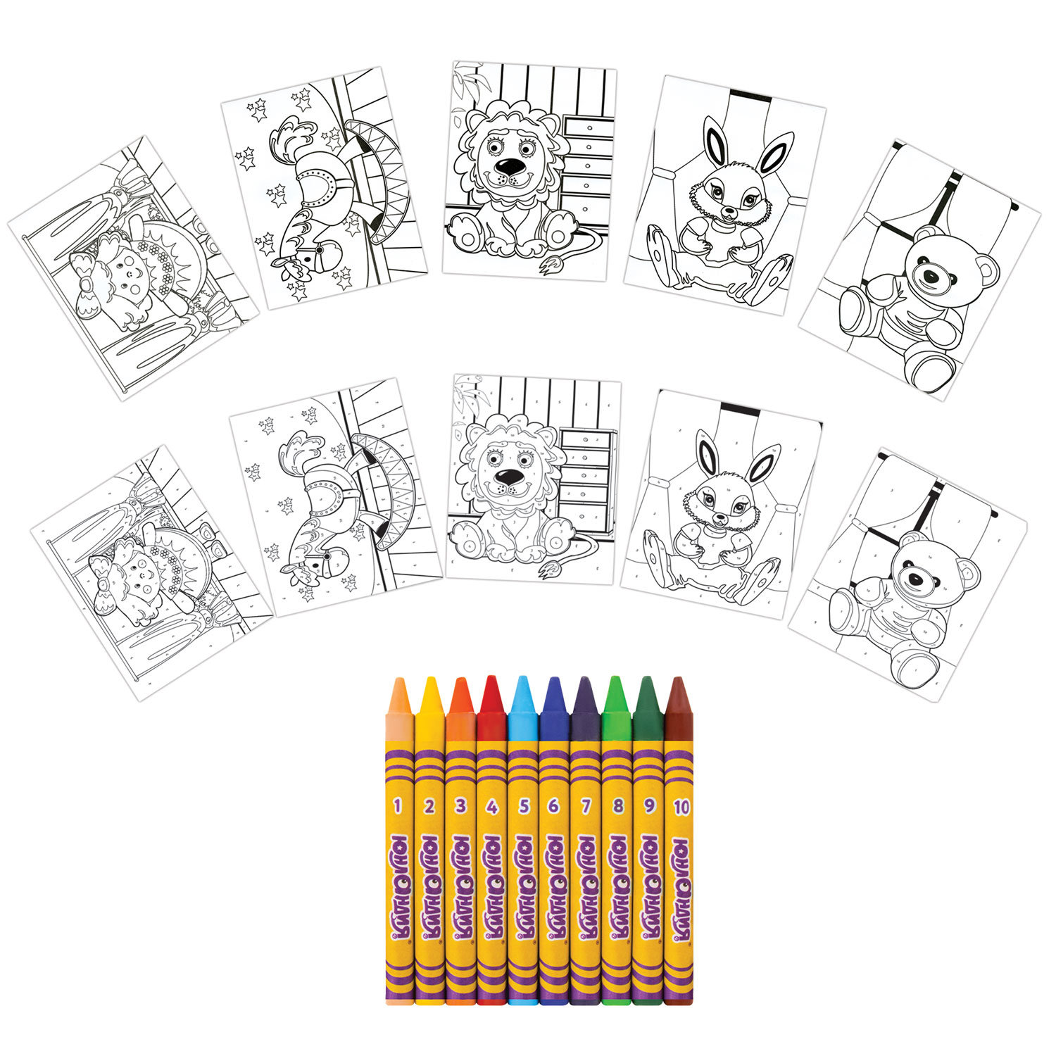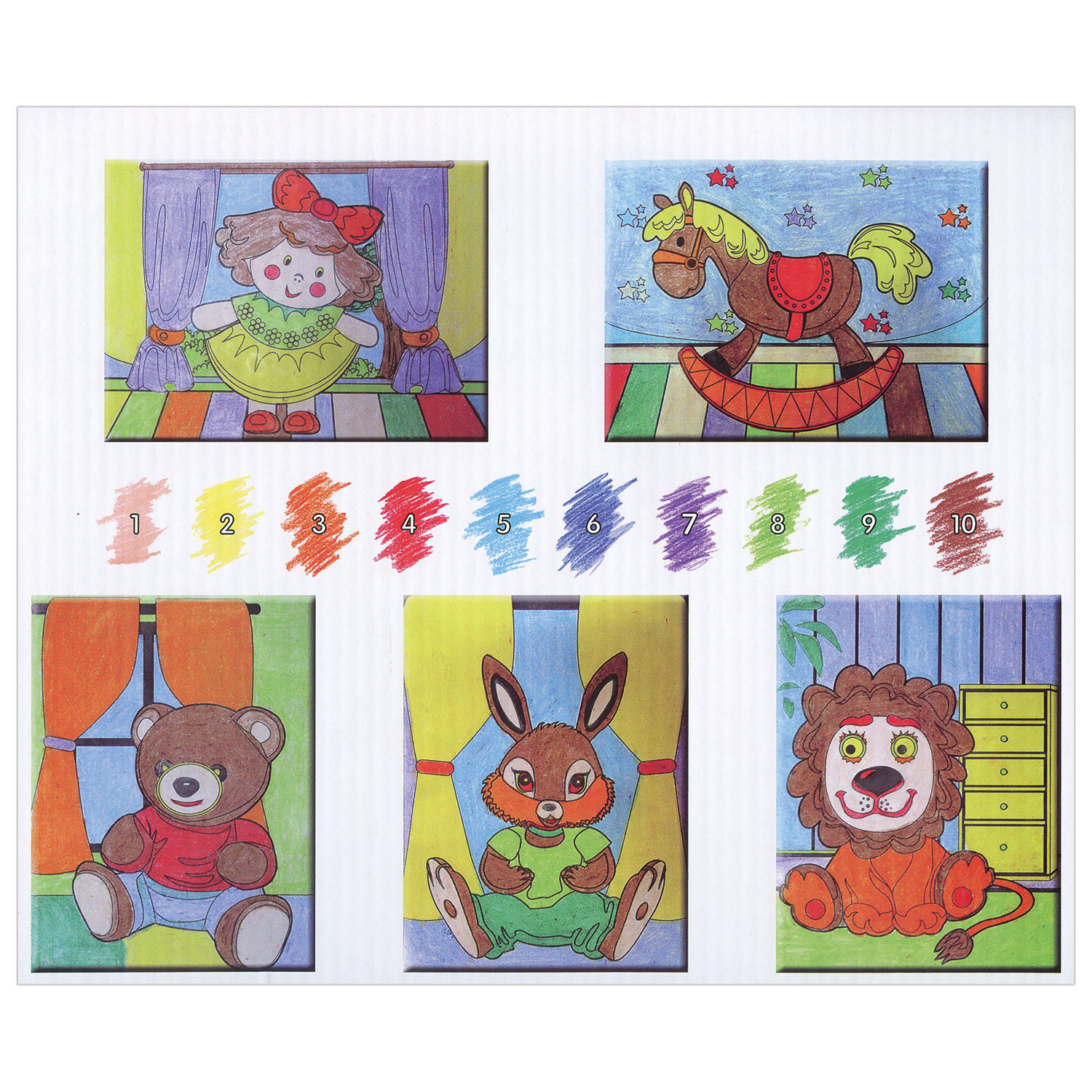 Раскраска по номерам А4, ЮНЛАНДИЯ "ИГРУШКИ", С ВОСКОВЫМИ МЕЛКАМИ, 5 картинок, 661609
