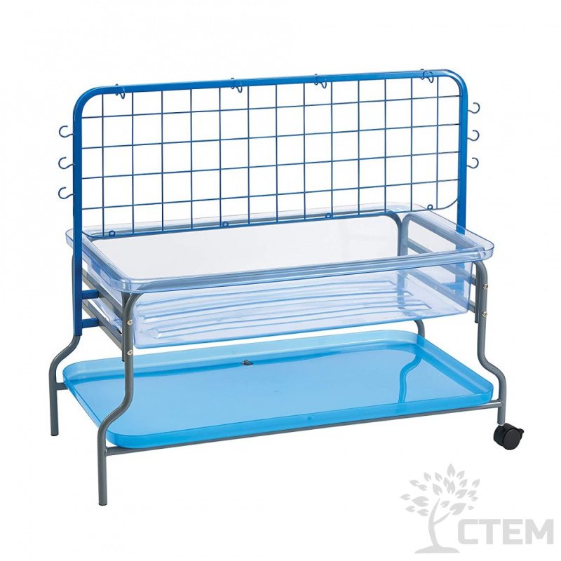 МНОГОМЕСТНОЕ ХРАНЕНИЕ ДЛЯ ИГРУШЕК - Рамка для занятий крепится к трубчатой стальной раме с помощью прилагаемых винтов и предлагает удобный способ повесить игрушки для песка и воды, когда они не используются.