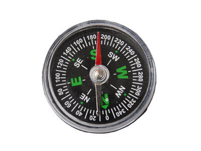 Компас состоит из пластмассовой круглой коробки, на дне которой имеется круговая шкала с указанием сторон света. В центре установлена игла, на острие которой насажена легкая магнитная стрелка. Коробка закрыта прозрачной крышкой.