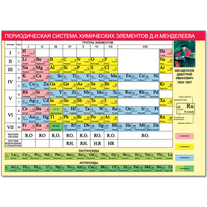 Периодическая система химических элементов - это уникальный справочный материал. Представлен обучающий плакат "Периодическая система химических элементов Д.И. Менделеева" с перечислением элементов, который окажет эффективную помощь при изучении химии в школе и домашних условиях. Плакат изготовлен из картона плотностью 190 г/м2.