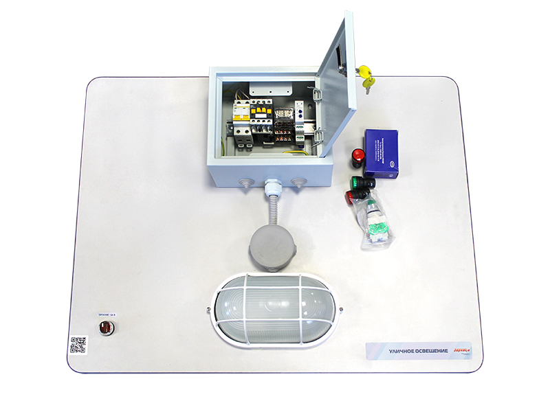 Комплект учебно-лабораторного оборудования "Уличное освещение" (далее стенд) предназначен для практического освоения учащимися всех этапов подготовки к электромонтажным работам и проведения непосредственных работ по установке электрокомпонентов, подготовке проводов, прокладке их в кабельных каналах и подключению электропитания.