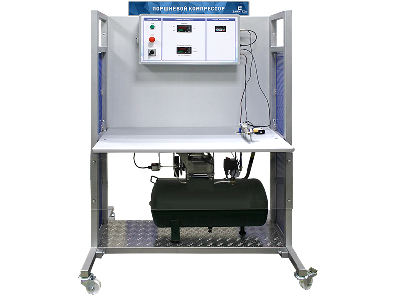 Комплект учебно-лабораторного оборудования "Поршневой компрессор" предназначен для изучения процесса работы поршневого компрессора и его основных характеристик: реальный цикл компрессора, давление внутри цилиндра, частота вращения коленчатого вала.