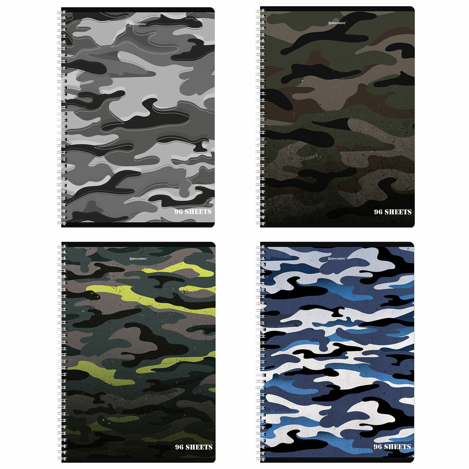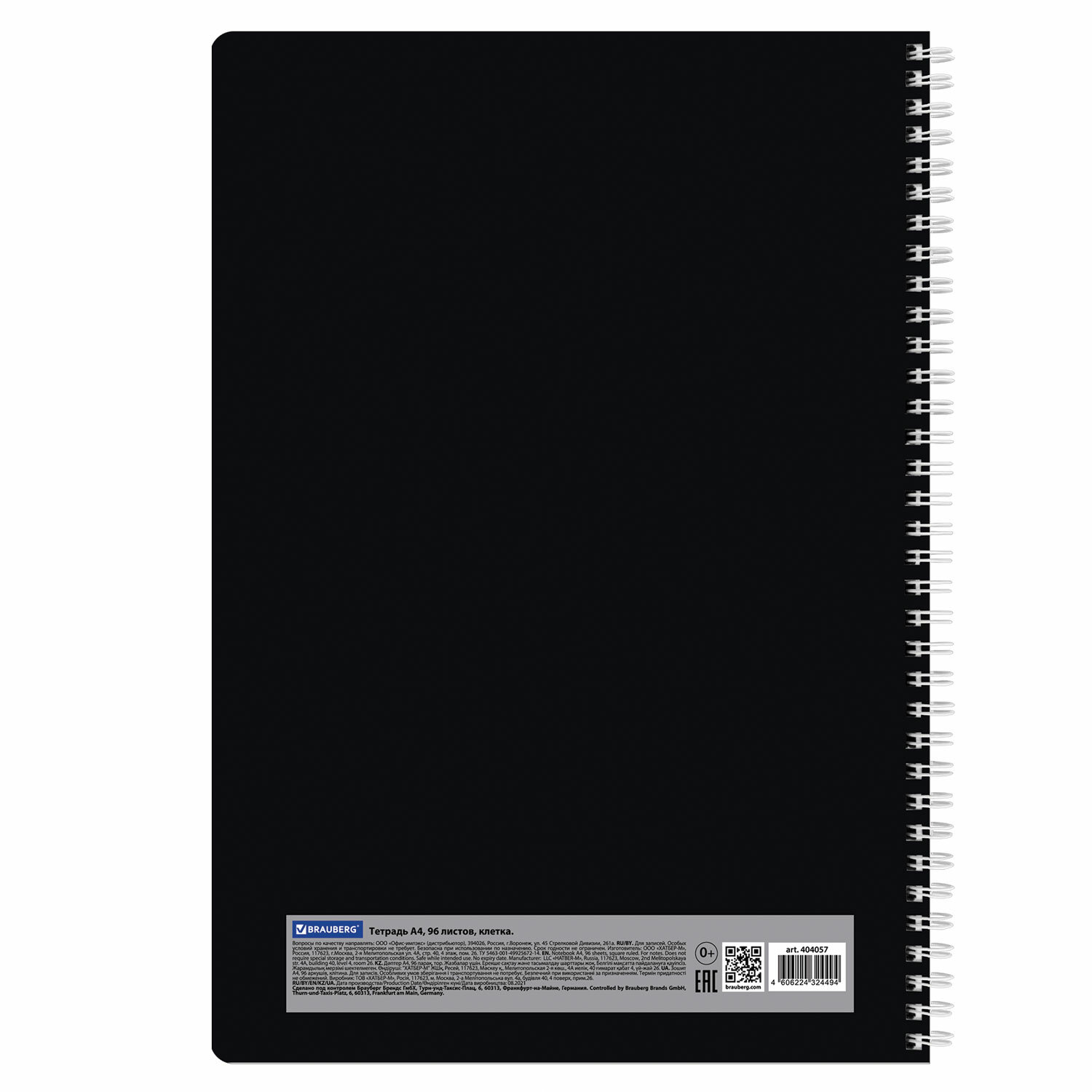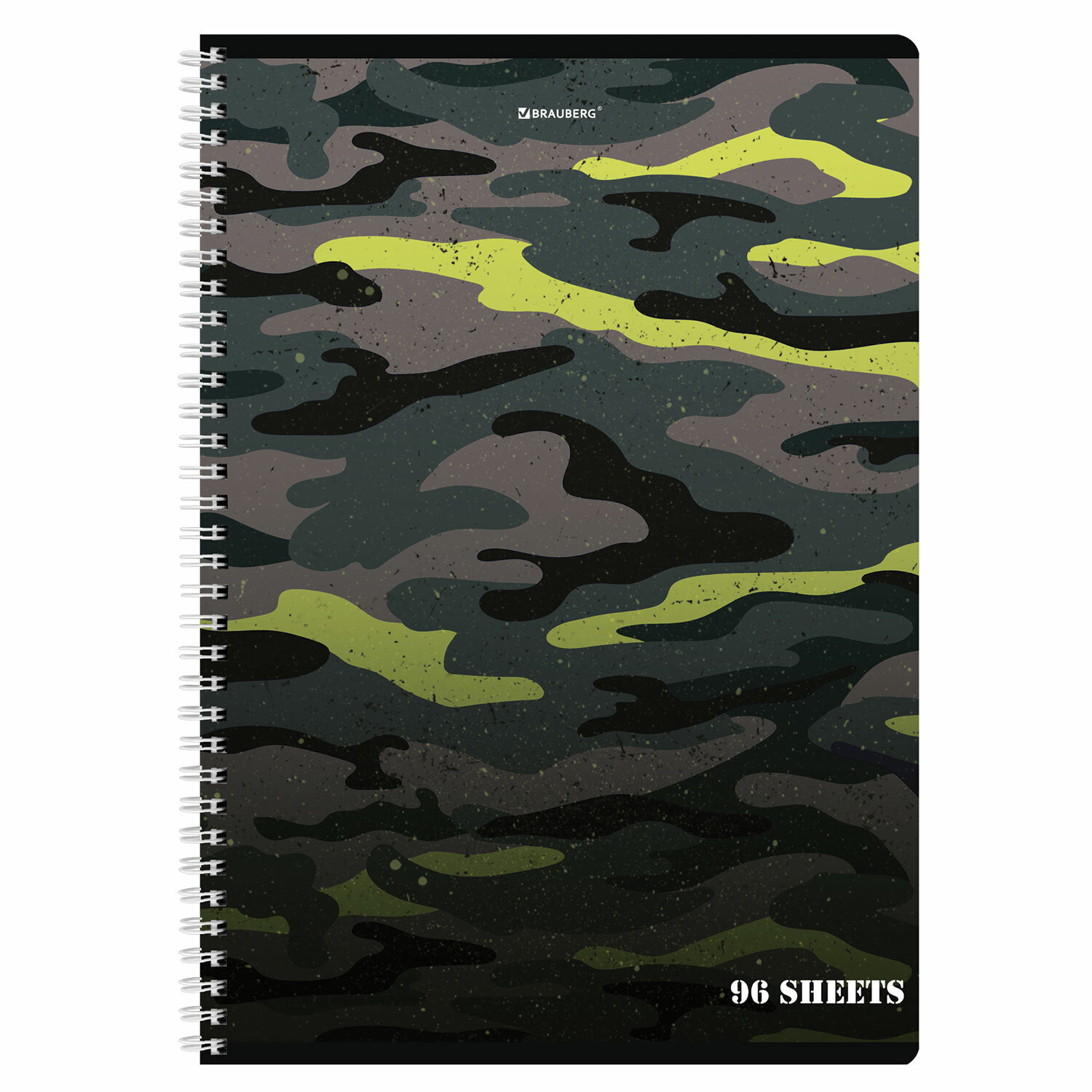 Внутренний блок содержит 96 листов офсетной бумаги плотностью 65 г/м2. Обложка изготовлена из мелованного картона. Линовка – клетка. Гребень надежно скрепляет листы между собой. Белизна – 100%. Формат А4.