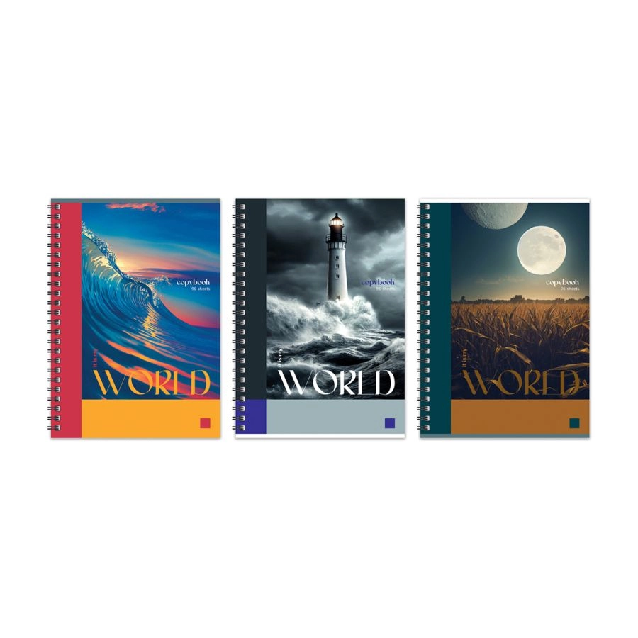 Тетрадь А4 96л. клетка на спирали BG, обложка картон, глянцевая ламинация, "Мой мир"