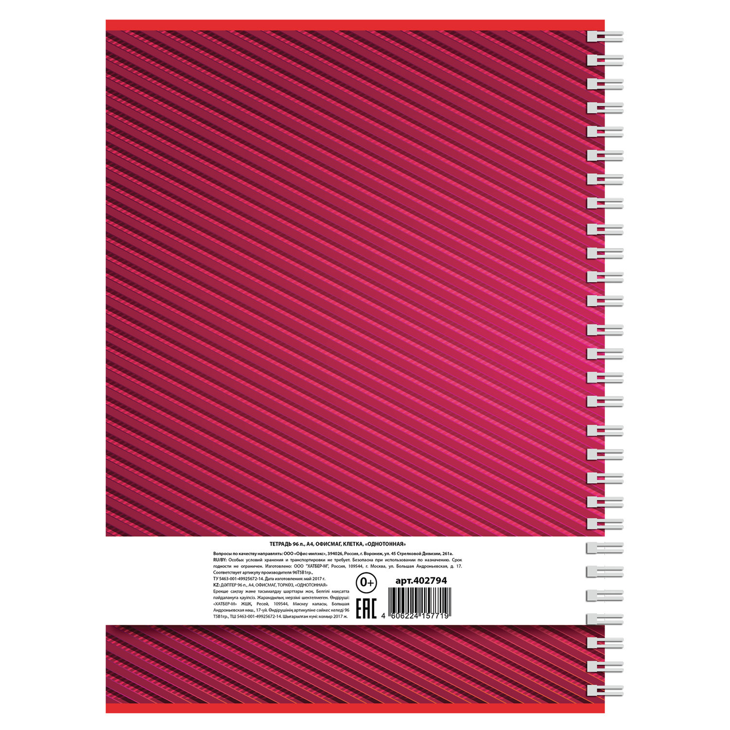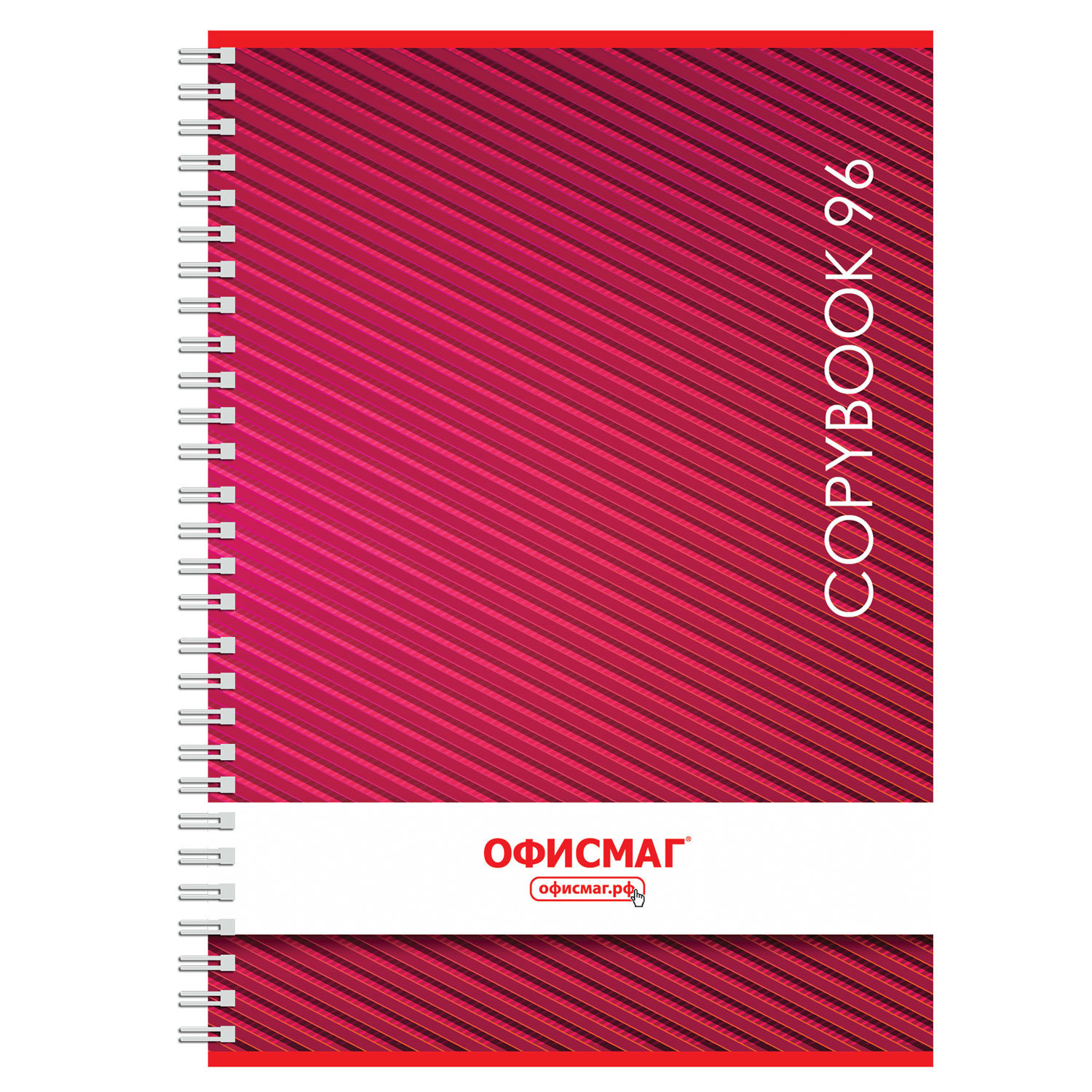 Тетрадь А4 96л. клетка на спирали ОФИСМАГ, обложка картон, ОДНОТОННАЯ