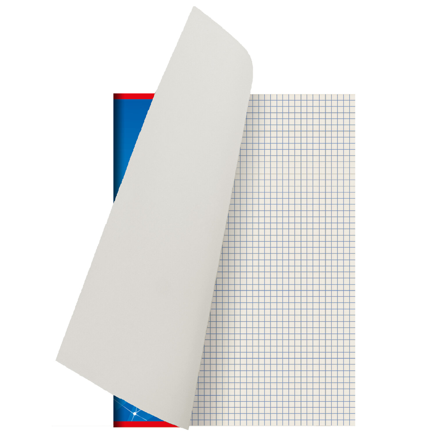 Внутренний блок содержит 96 листов типографской бумаги плотностью 60 г/м2 с серым оттенком. Обложка изготовлена из мелованного картона. Линовка - клетка. Скрепка надежно скрепляет листы между собой. Белизна - 80%. Формат А4 (198х270 мм).Поставляется в нескольких вариантах цвета (без возможности выбора).
