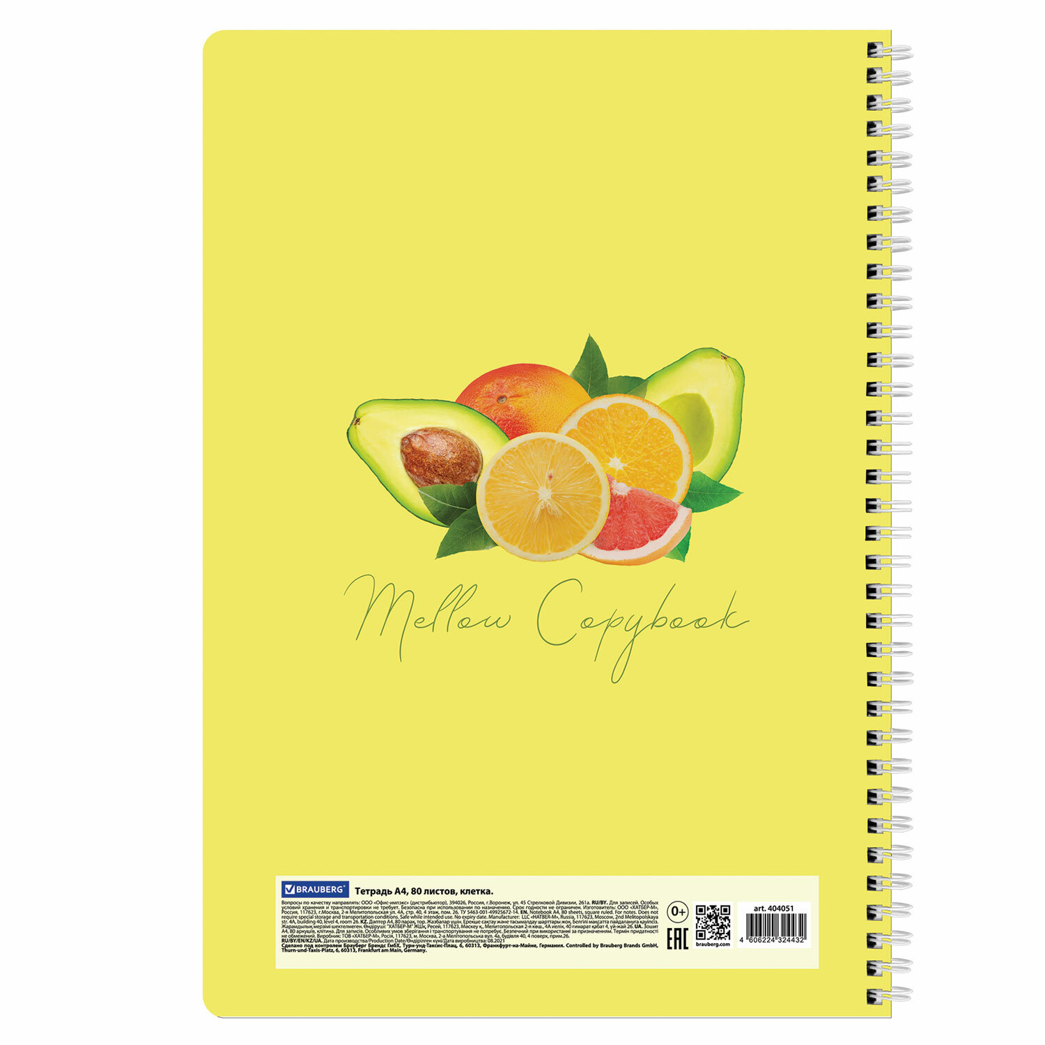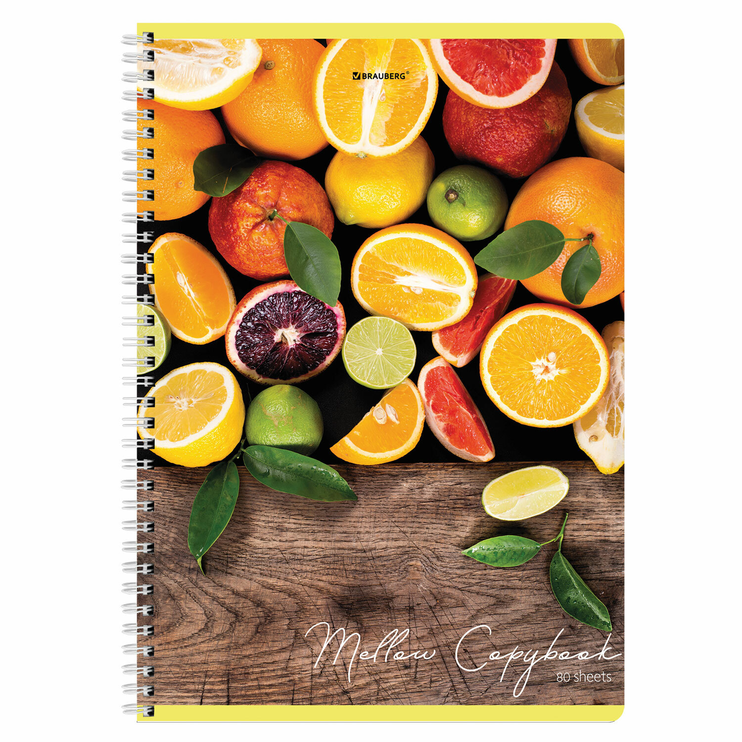 —Тетрадь А4 80л. клетка на спирали BRAUBERG, обложка картон, "Фрукты"