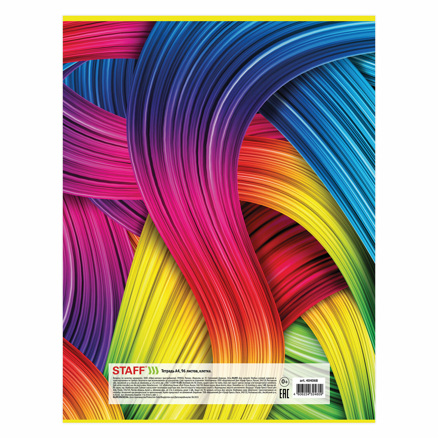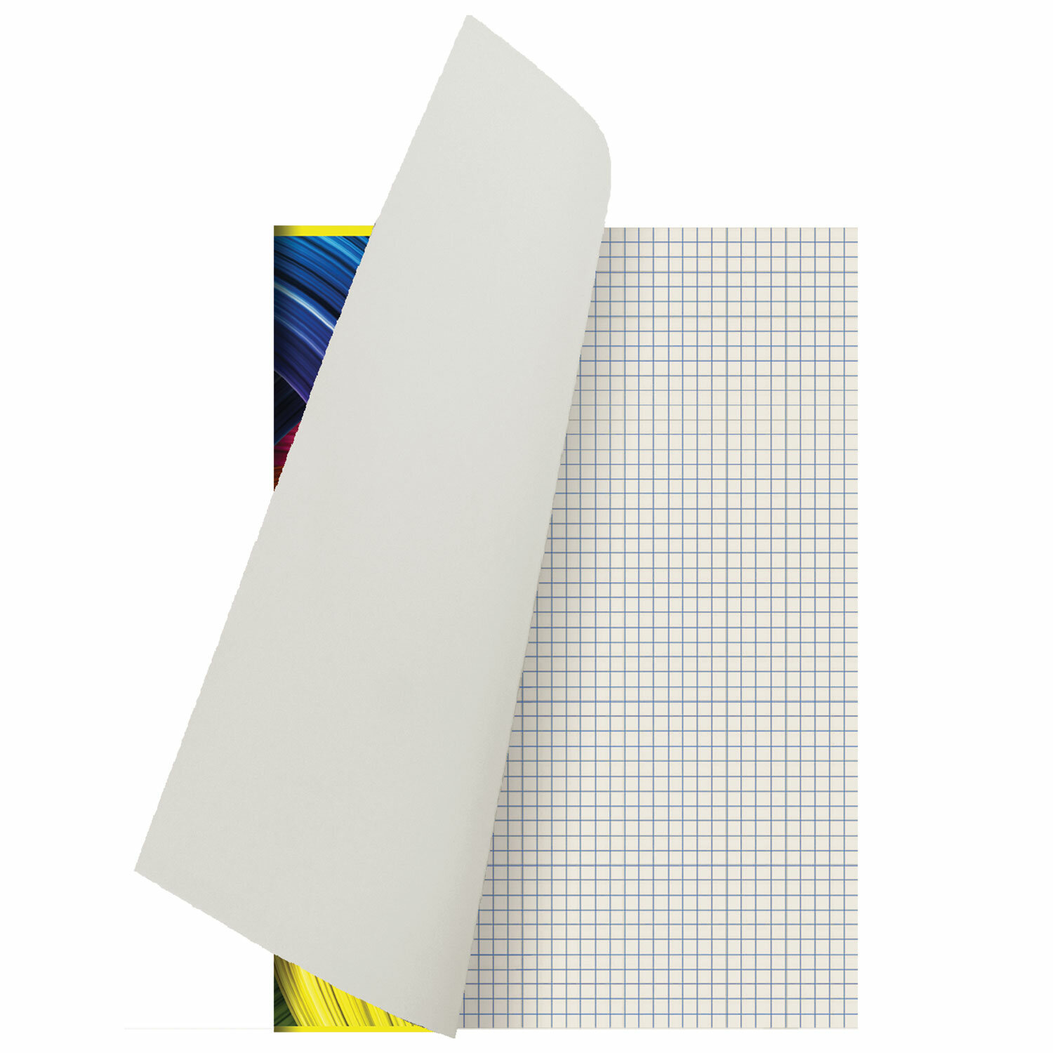 Внутренний блок содержит 96 листов типографской бумаги плотностью 60 г/м2 с серым оттенком. Обложка изготовлена из мелованного картона. Линовка - клетка. Скоба надежно скрепляет листы между собой. Белизна - 80%. Формат А4 (198х270 мм).