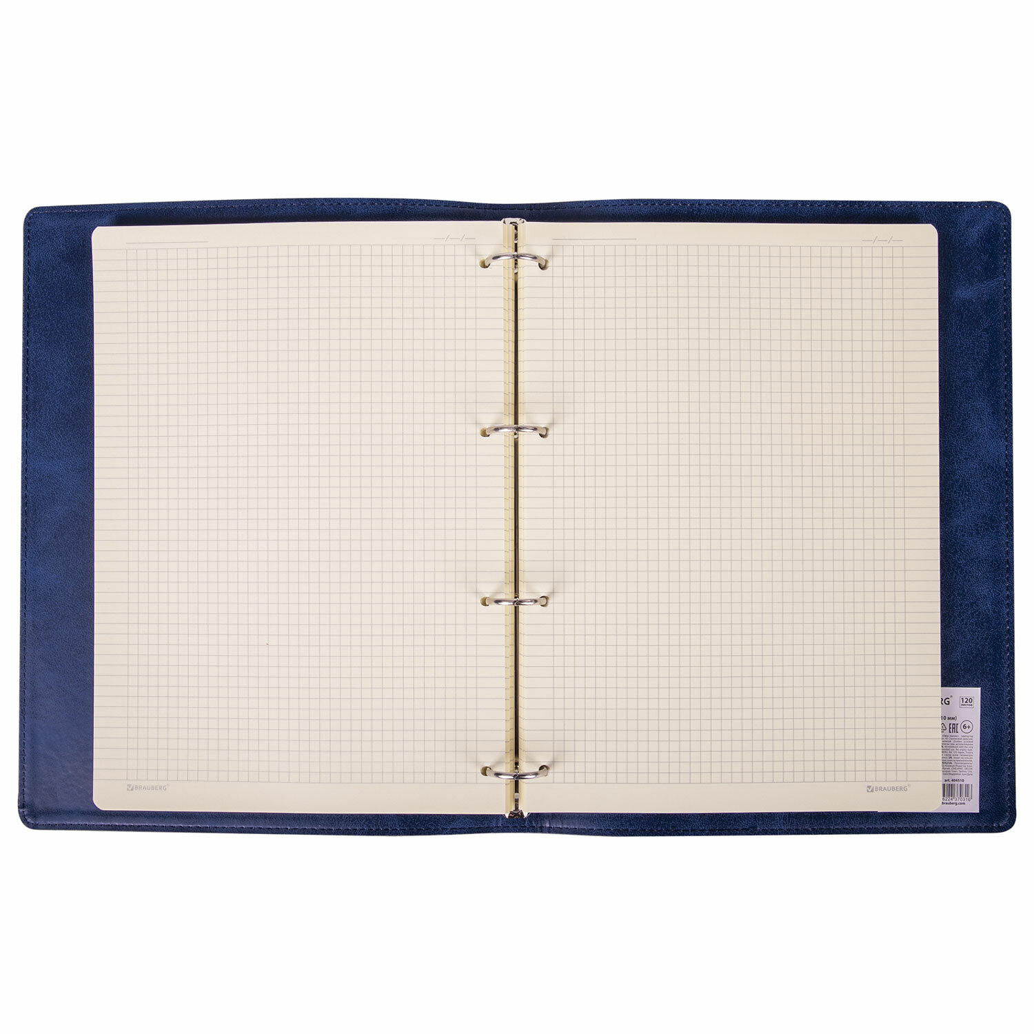 Тетрадь на кольцах А4 (240х310мм) 120л. BRAUBERG "Main", под кожу, клетка, синий