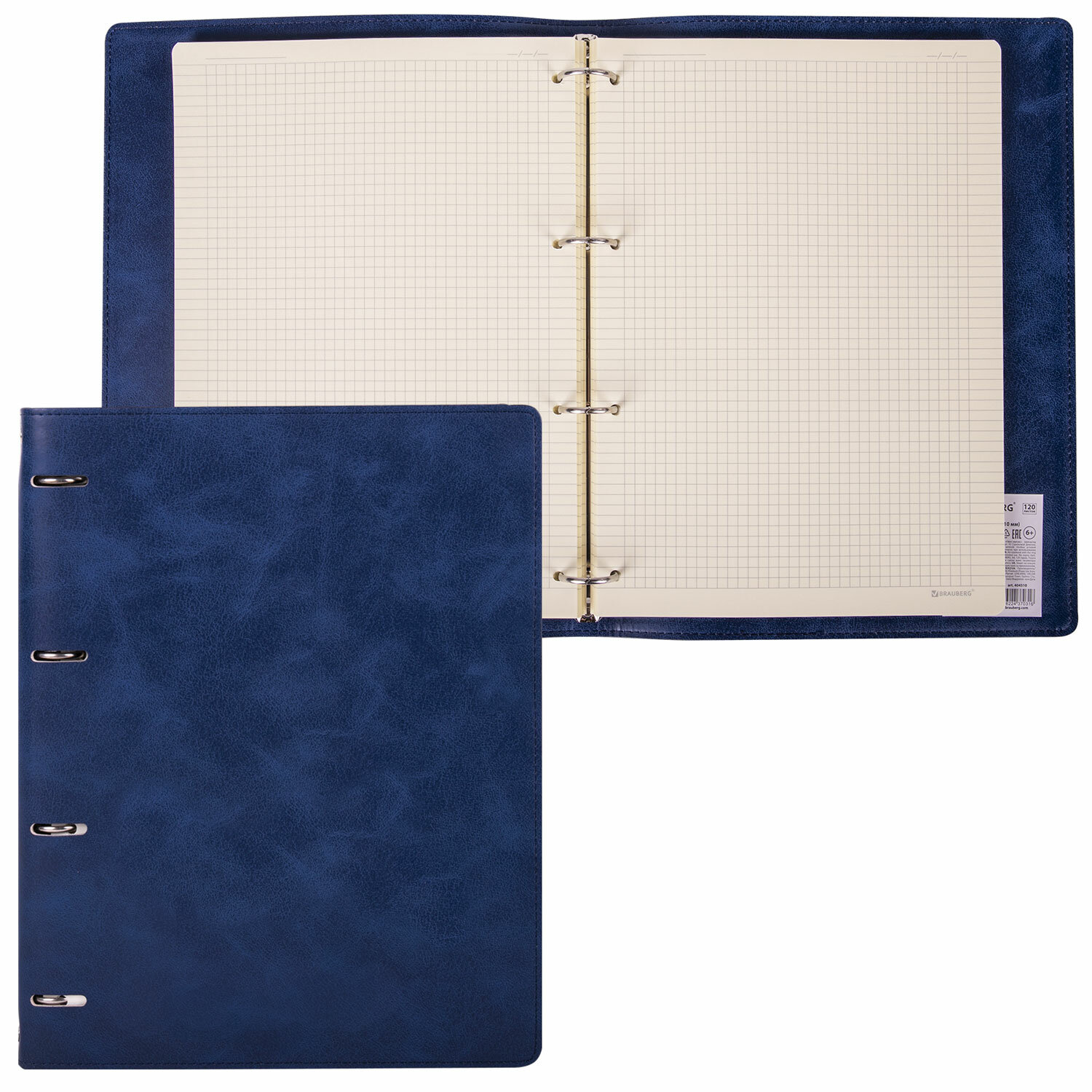 —Тетрадь на кольцах А4 (240х310мм) 120л. BRAUBERG "Main", под кожу, клетка, синий