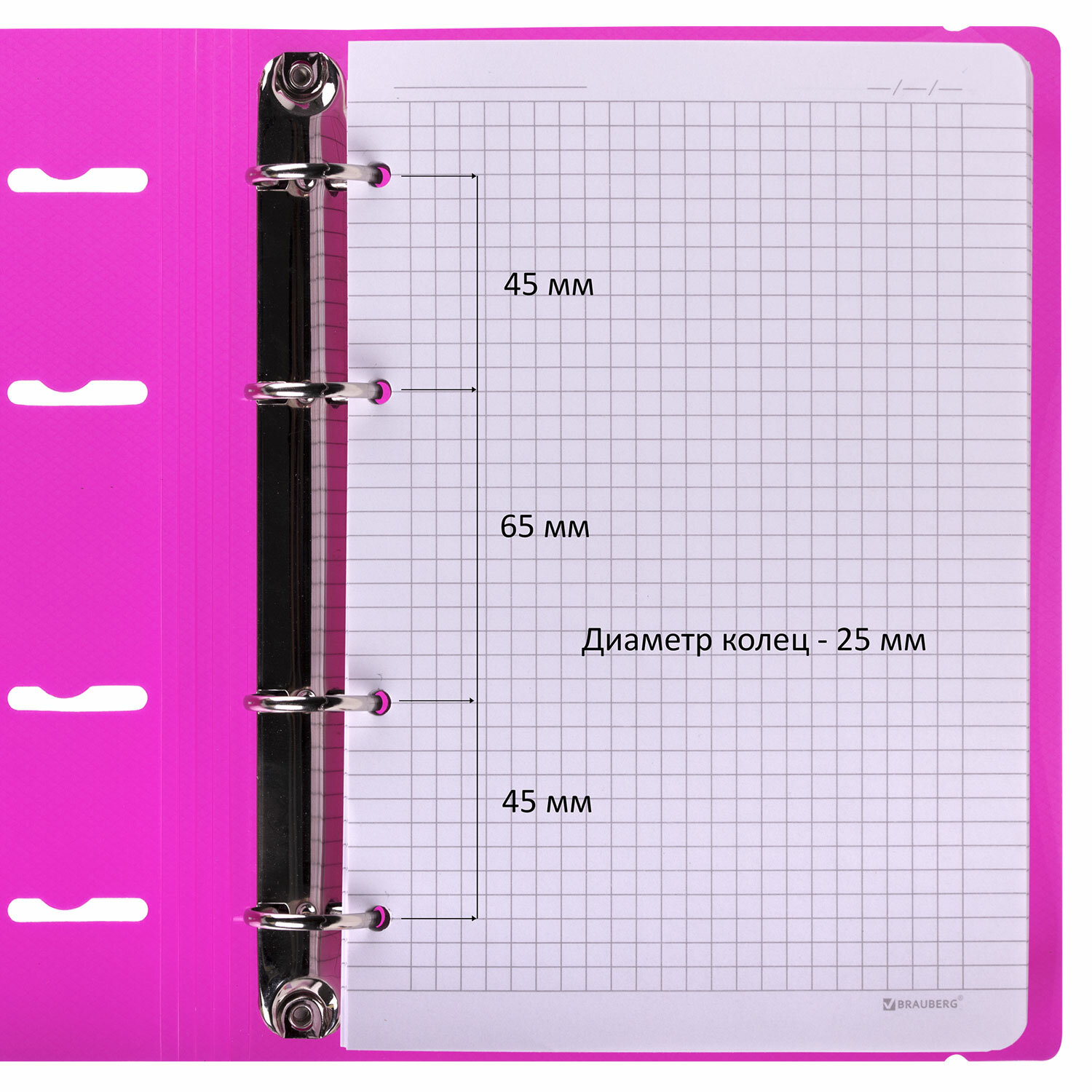 —Тетрадь на кольцах А5 (175х220мм) 120л. BRAUBERG "Розовый", пластик, с резинкой