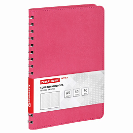 —Бизнес-тетрадь А5 80л. на спирали BRAUBERG "Office PRO", гибкая, под кожу, розовая