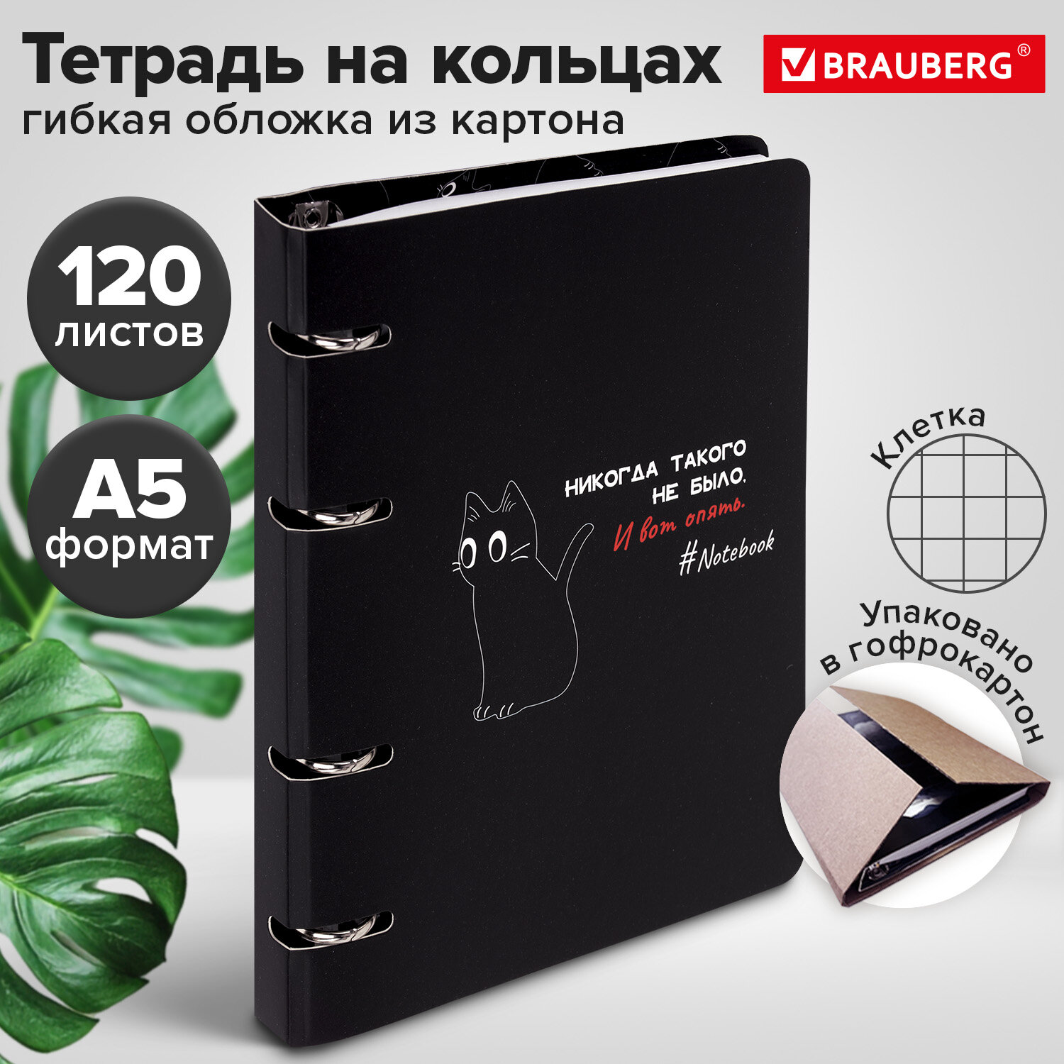 Тетрадь на кольцах А5 160х212 мм, 120 листов, картон, матовая ламинация, клетка, BRAUBERG, "Просто К