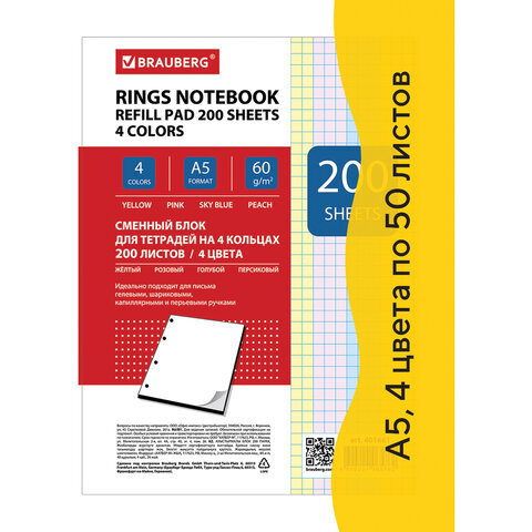 Формат: А5 Общее количество листов: 200 Вид бумаги: офсет Плотность бумаги: 60 г/м2 Вид линовки: клетка Цвет сменного блока: ассорти Термоупаковка: да