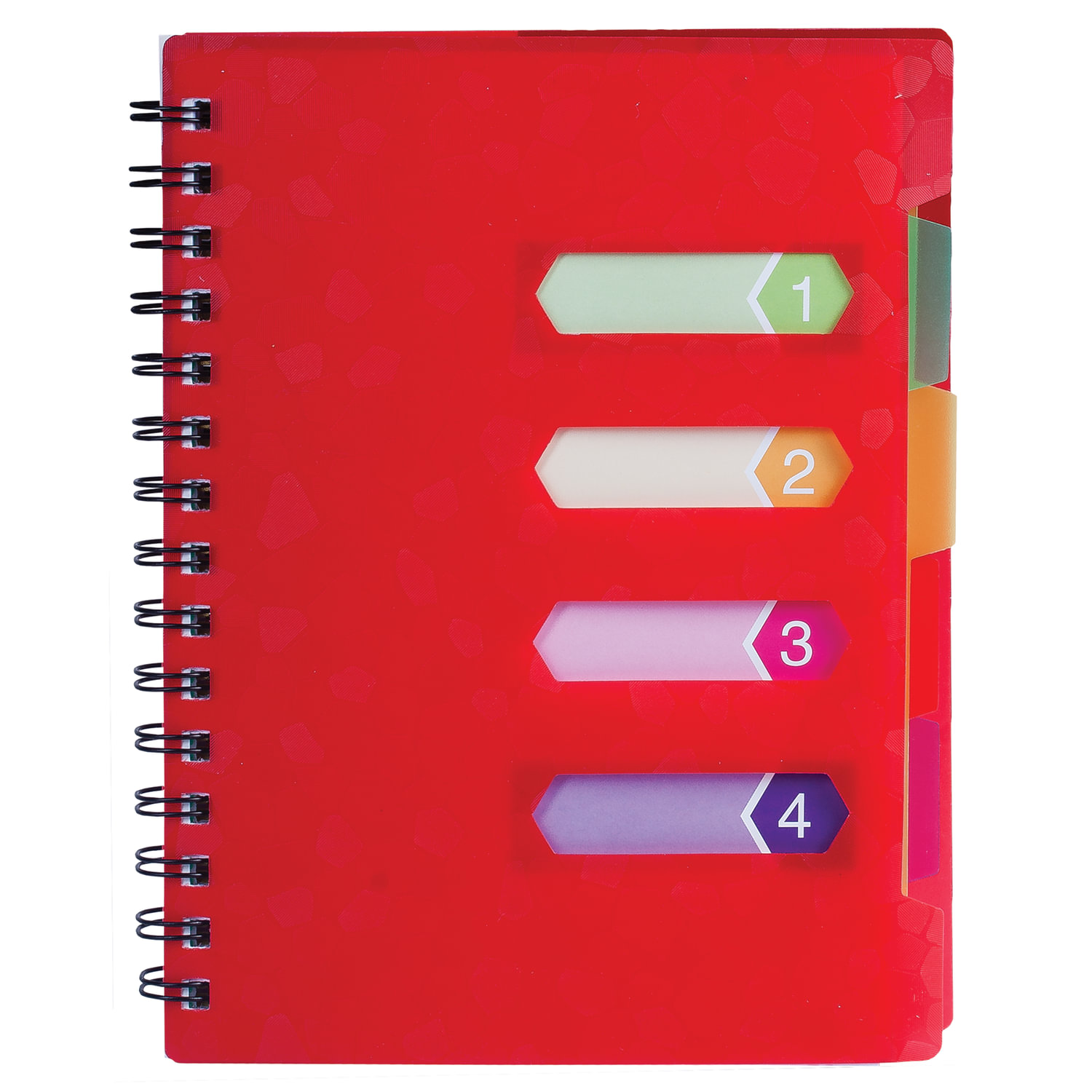 Формат: А5 Количество листов: 120 Линовка блока: линия Тип скрепления: евроспираль Обложка: пластик Тип спецэффектов на обложке: вырубка Количество разделителей: 4 Внутренний блок: офсет Плотность внутреннего блока: 60 г/м2 Расположение спирали: слева Цвет: ассорти Количество дизайнов в упаковке: 4 Длина: 215 мм Ширина: 170 мм