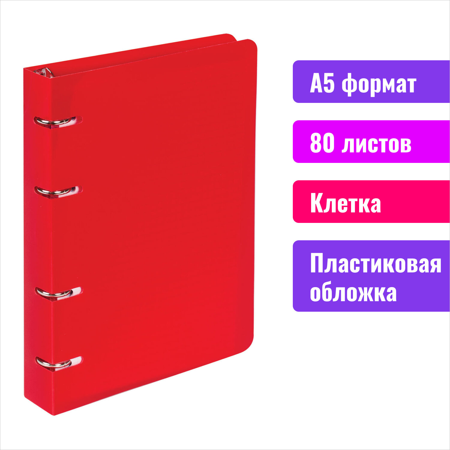 Тетрадь на кольцах А5 (160х215мм) 80л.  BRAUBERG "Красный", пластик, клетка