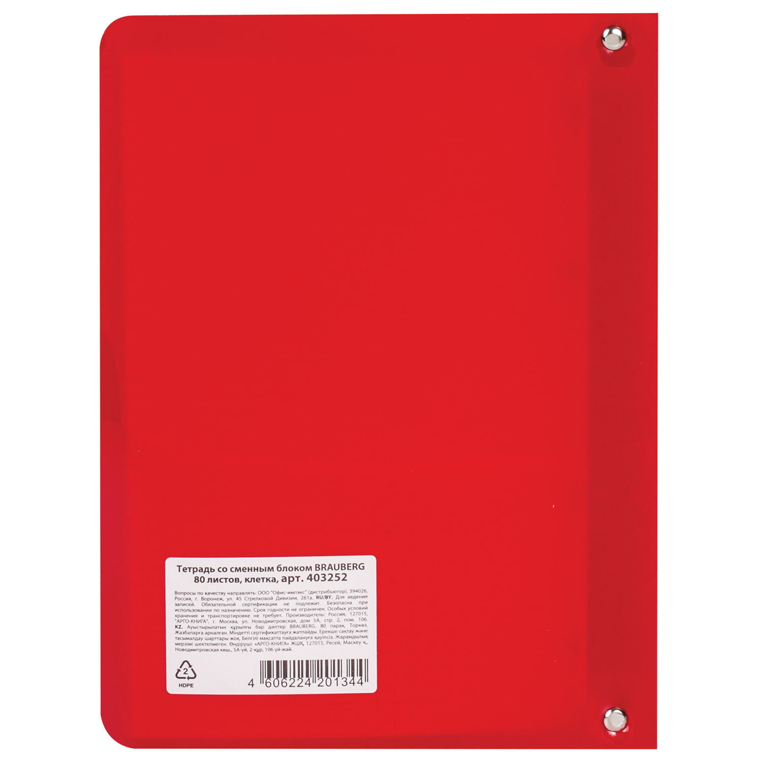 —Тетрадь на кольцах А5 (160х215мм) 80л. BRAUBERG "Красный", пластик, клетка