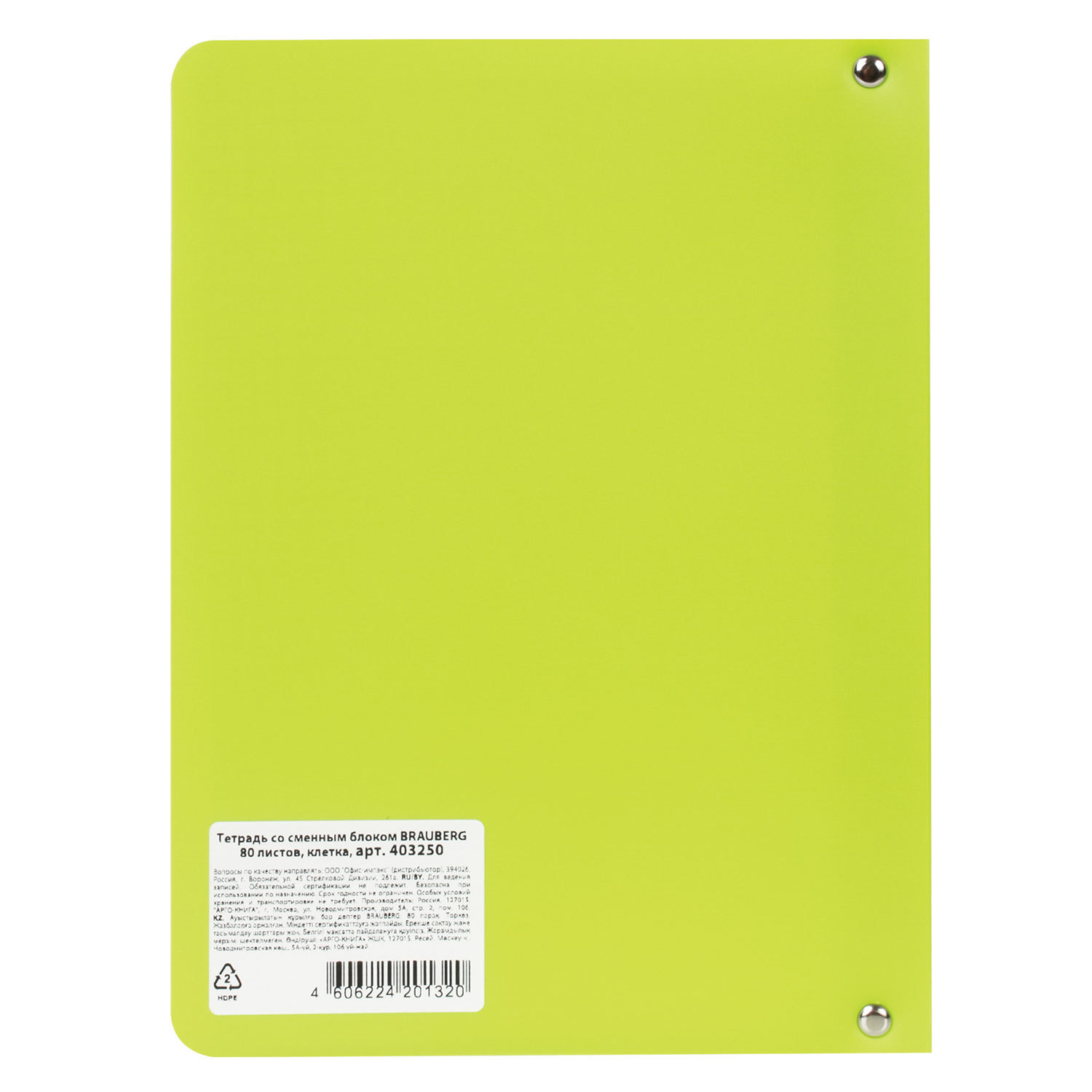 —Тетрадь на кольцах А5 (160х215мм) 80л. BRAUBERG "Салатовый", пластик, клетка