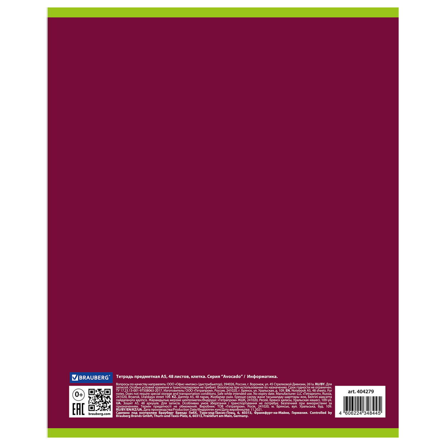 Предметная тетрадь BRAUBERG из серии "AVOCADO" предназначена для учащихся средних и старших классов. Выполнена в современном дизайне.