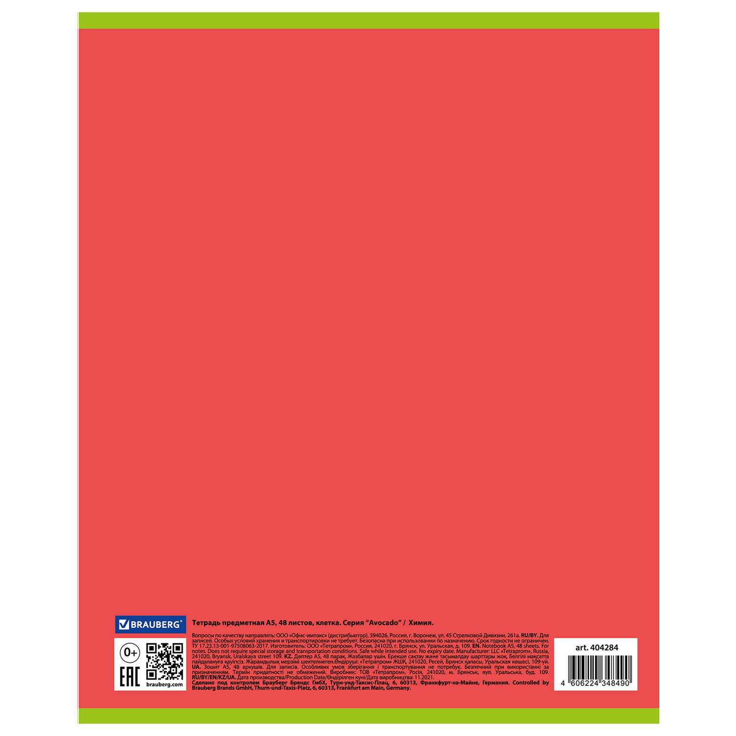 Тетрадь предметная AVOCADO 48л, глянцевый лак, ХИМИЯ, клетка, подсказ, BRAUBERG