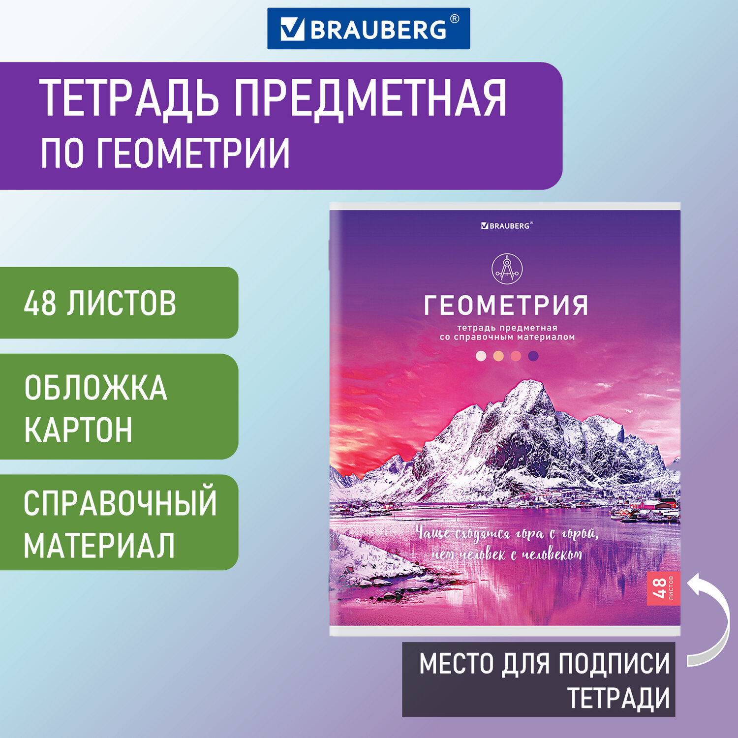 —Тетрадь предметная КЛАССИКА NATURE 48л, обложка картон, ГЕОМЕТРИЯ, клетка, BRAUBERG