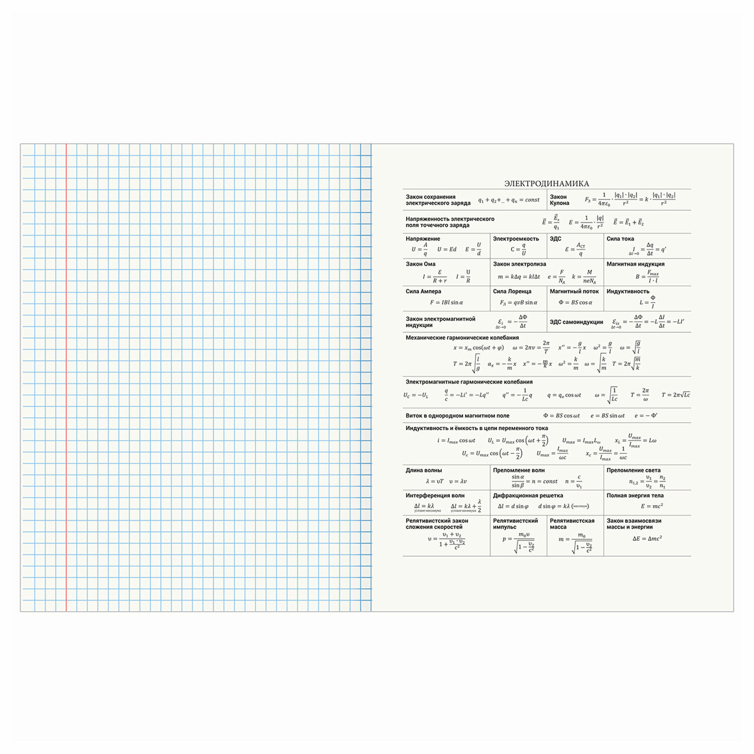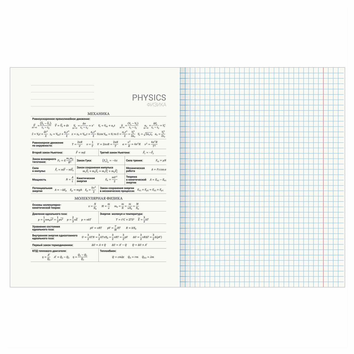 Тетрадь по физике формата А5 (165х202 мм) содержит 48 листов, изготовленных из высококачественной офсетной бумаги плотностью 60 г/м2 и белизной 100%.