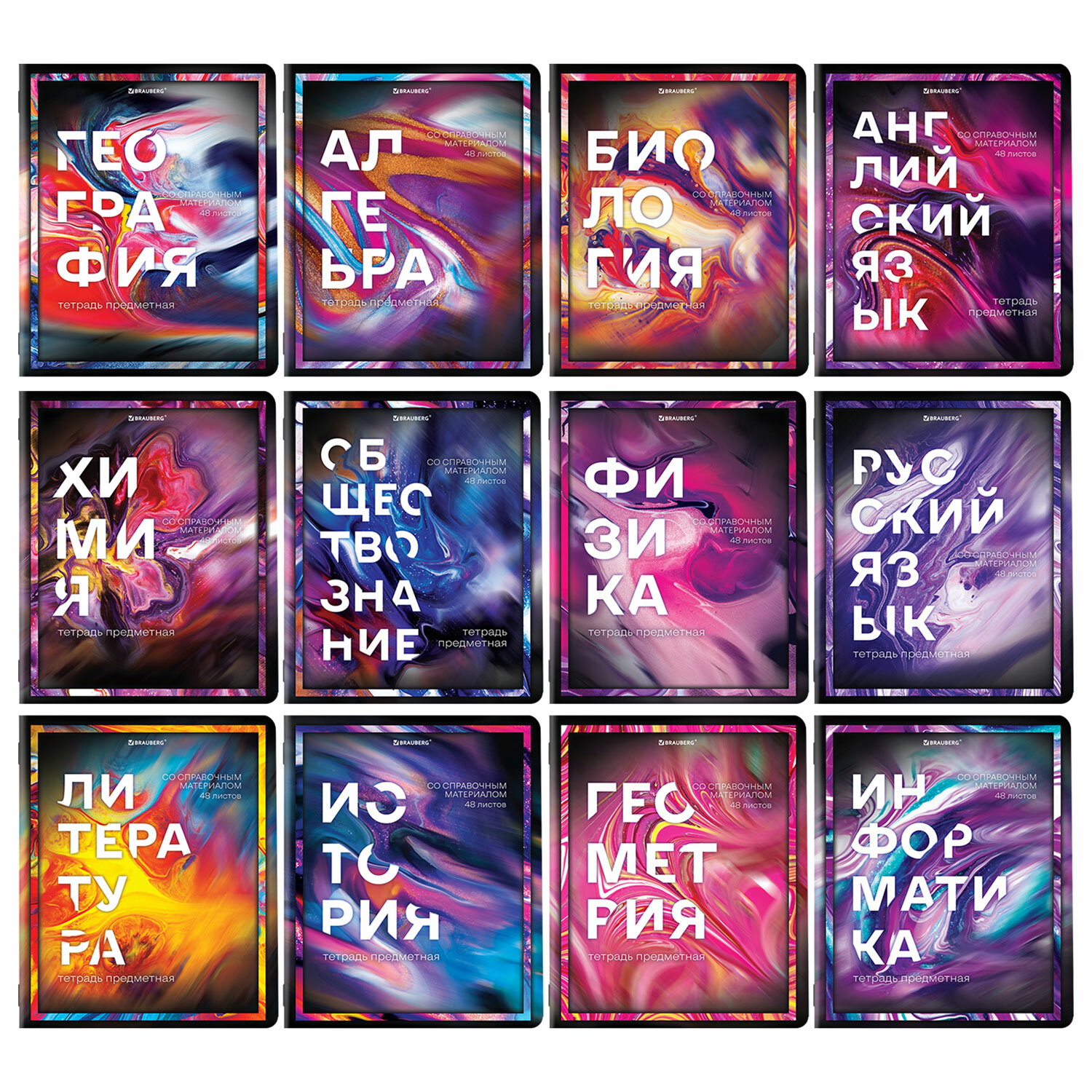 Предметные тетради BRAUBERG из серии "LIQUID MARBLE" со справочным материалом предназначены для учащихся средних и старших классов.