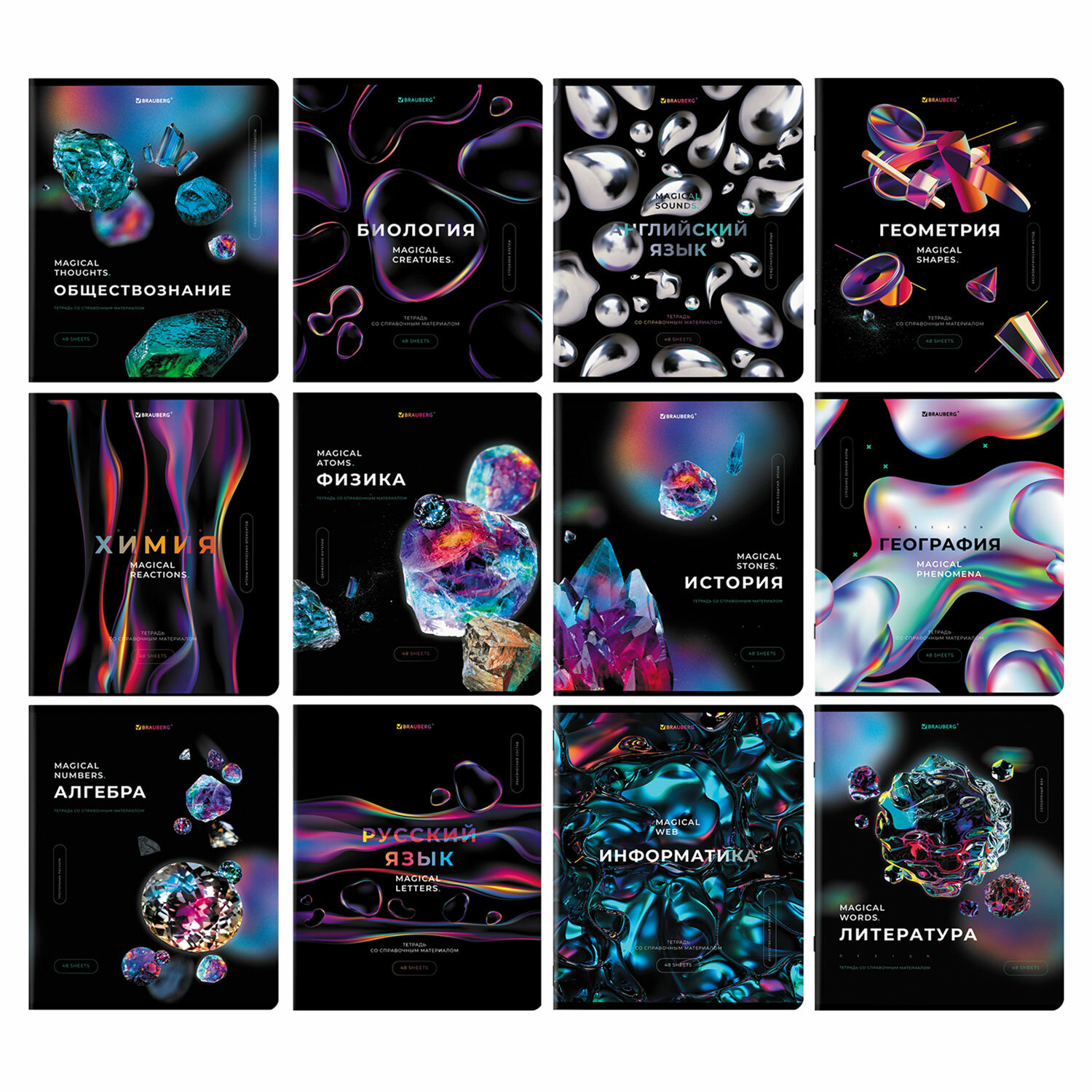 —Тетради предметные, КОМПЛЕКТ 12 ПРЕДМЕТОВ, 48 л., глянцевый УФ-лак, BRAUBERG "MAGICAL"