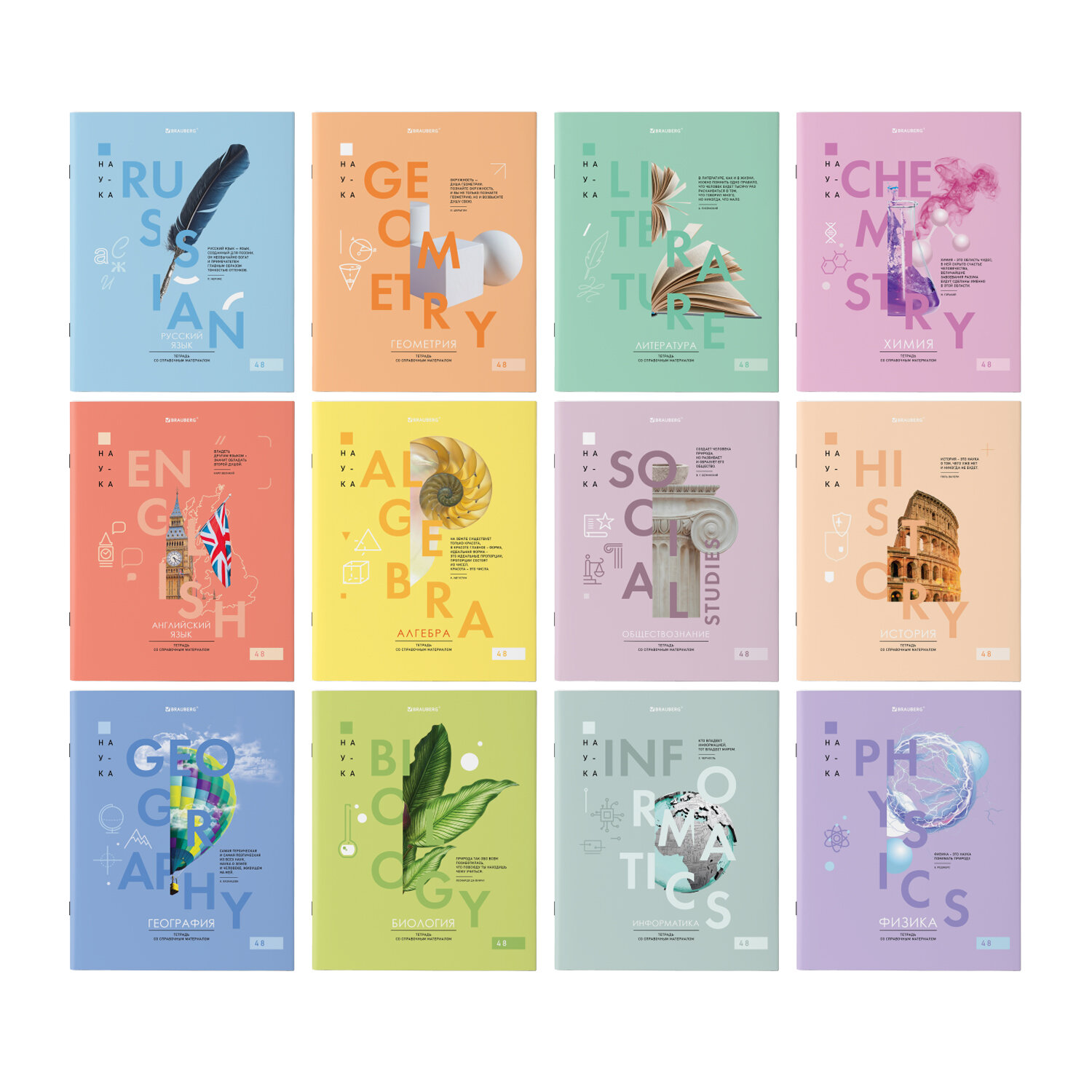 Тетради предметные, КОМПЛЕКТ 12 ПРЕДМЕТОВ, 48л, обложка картон, BRAUBERG VISION
