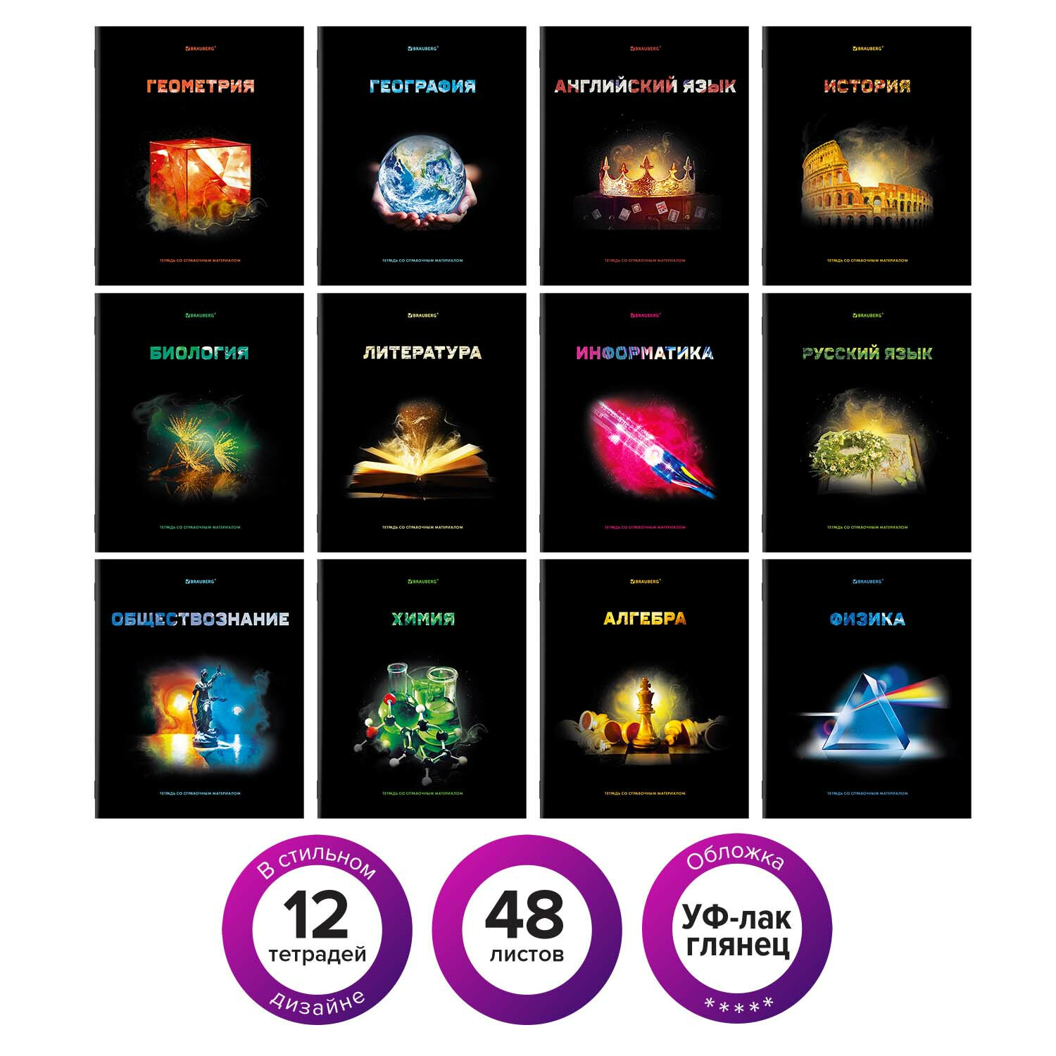 —Тетради предметные, КОМПЛЕКТ 12 ПРЕДМЕТОВ, "SHADE", 48 л., глянцевый УФ-лак, BRAUBERG