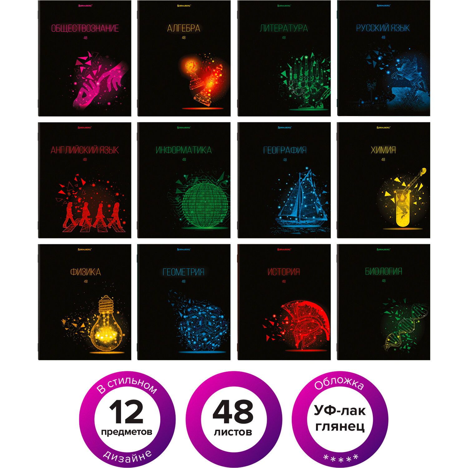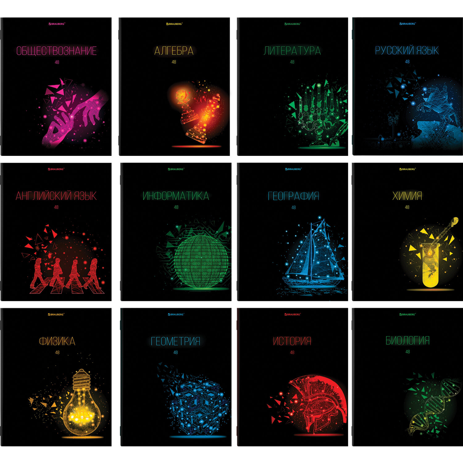 —Тетради предметные, КОМПЛЕКТ 12 ПРЕДМЕТОВ, "DARK", 48 листов, глянцевый УФ-лак, BRAUBERG